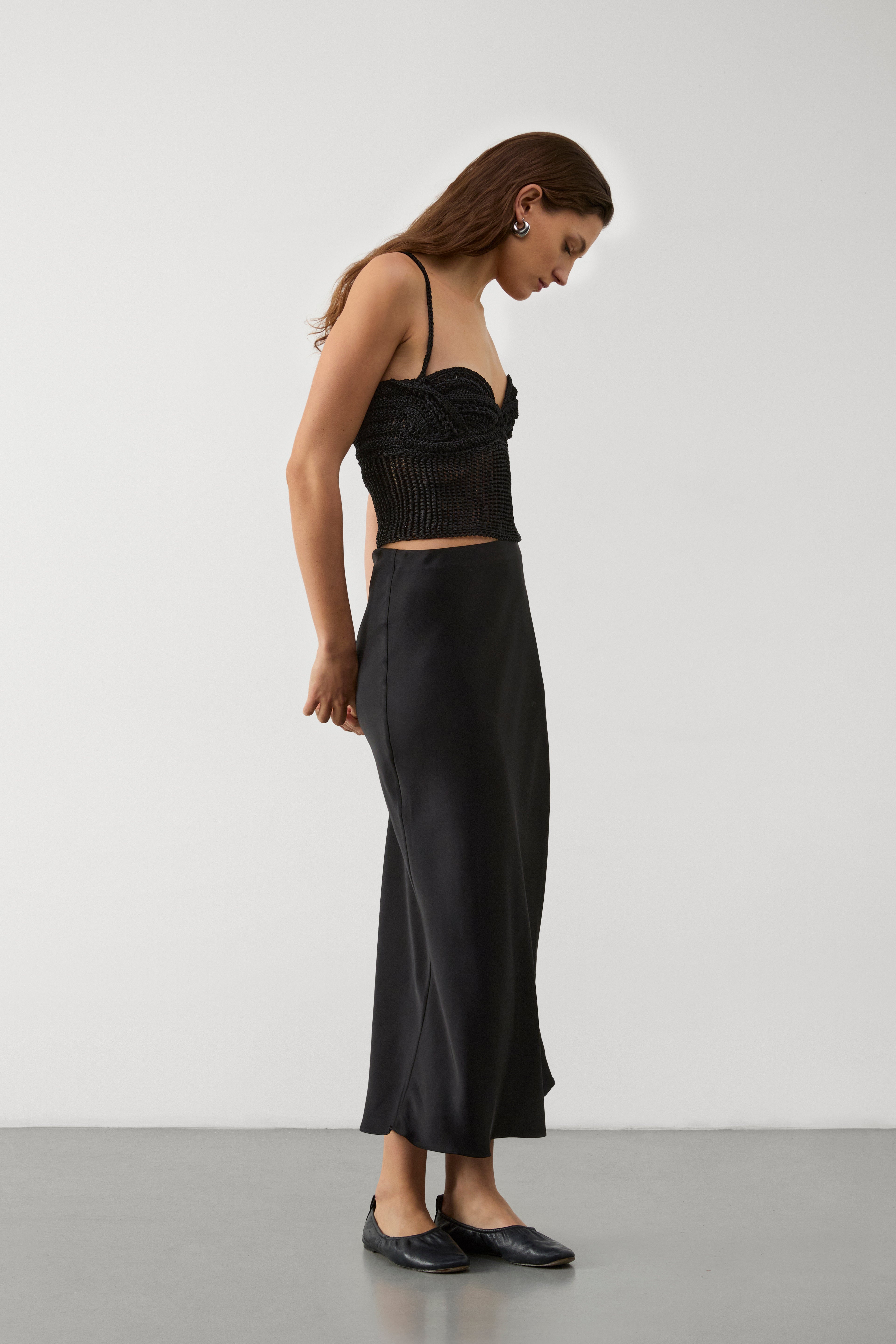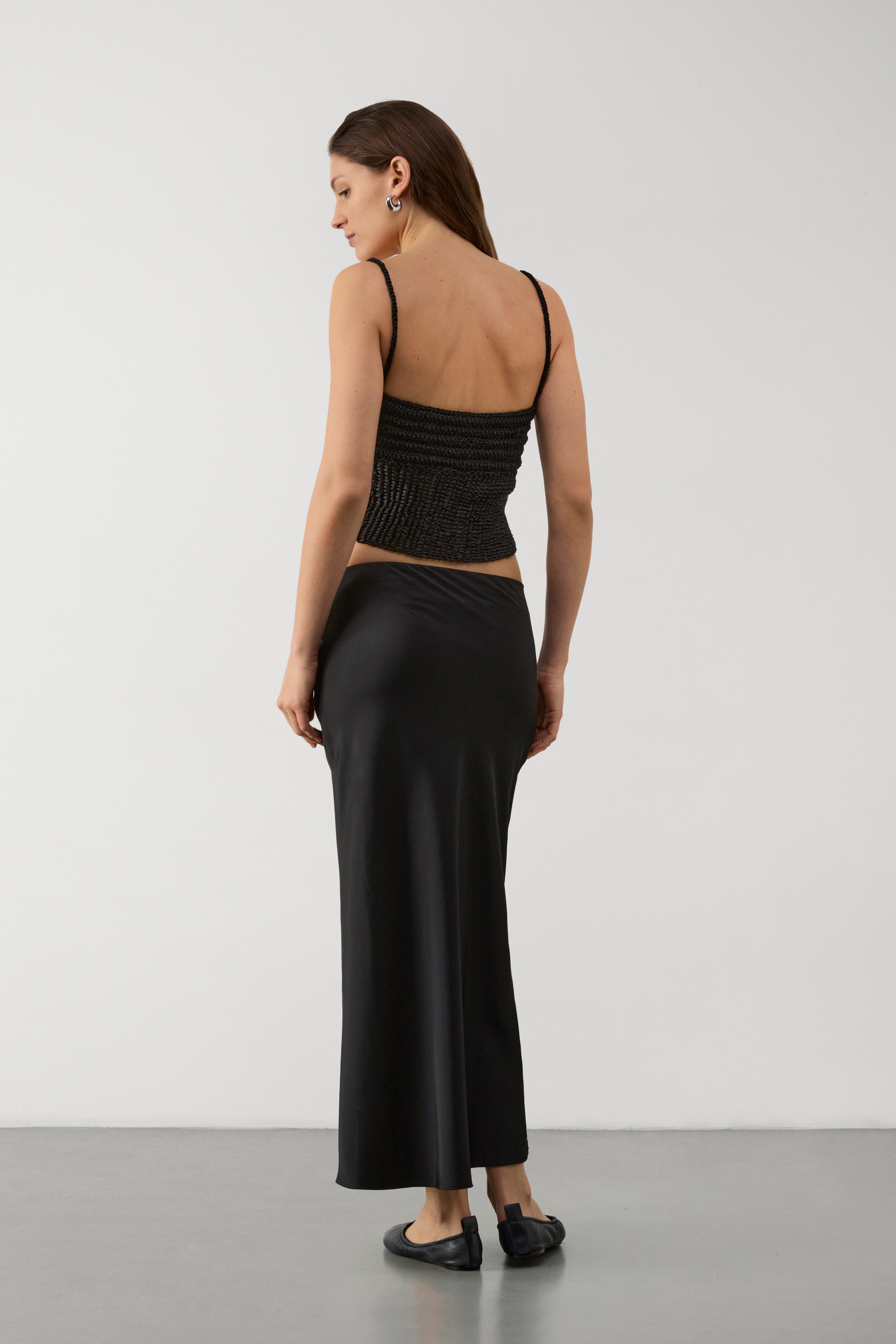 Black knitted top, Entirely handmade using the brand's signature knitted interweaving technique.